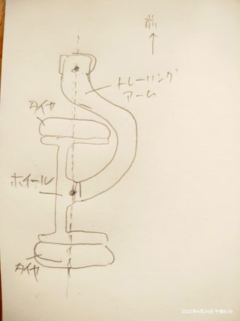 あるいは、トレーリングアームと車輪との関係でいうと。